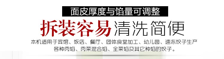 JGB-120-5A型输送带饺子机,本机是一款可生产各种肉馅、肉菜混合馅、全菜馅及其他种馅饺子的设备。一机多用途,只要更换模具,就可制作不同的食品,如春卷、馄饨、咖喱角、锅贴等。适用于宾馆、饭店、餐厅、团体食堂加工,幼儿园、速冻饺子生产。